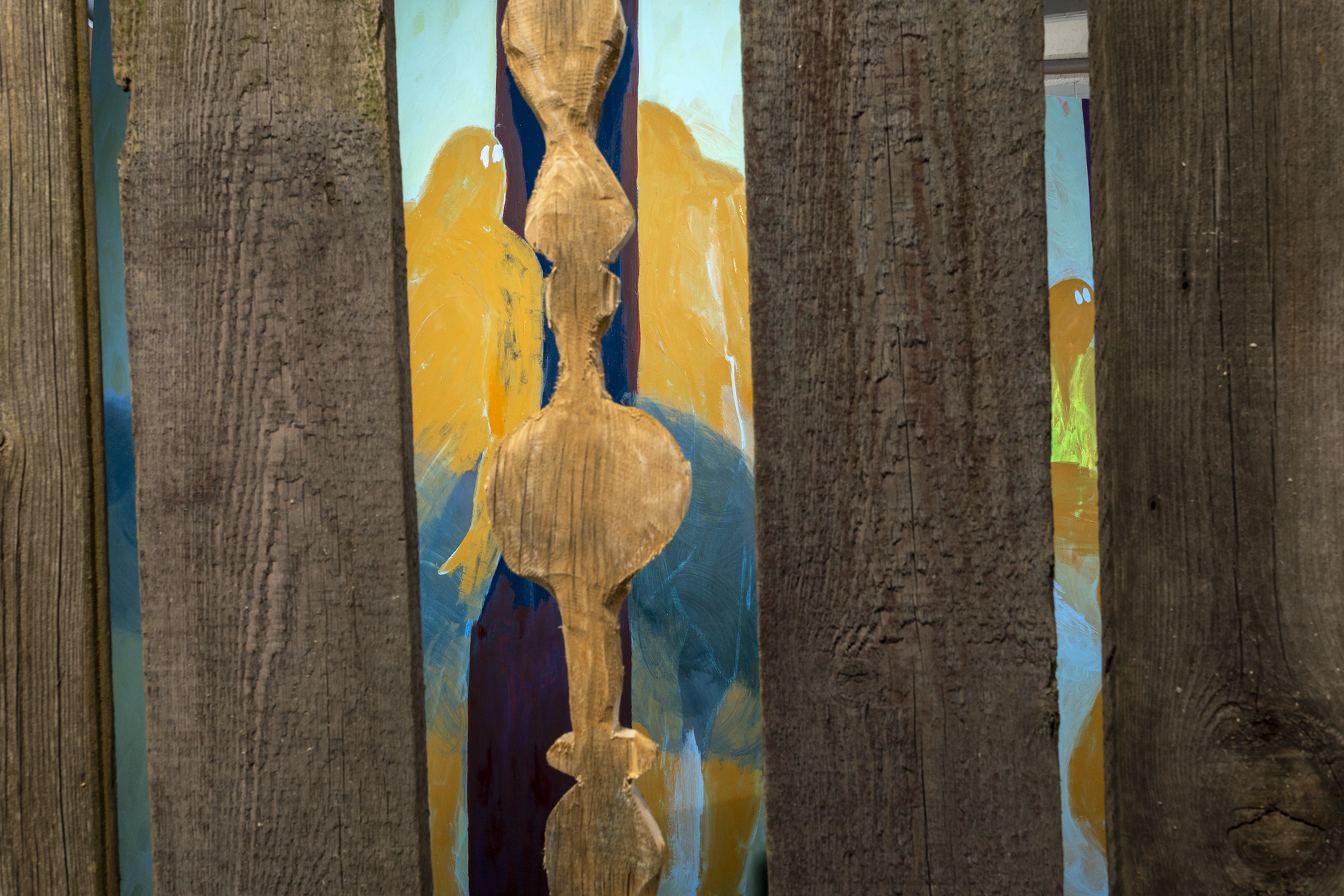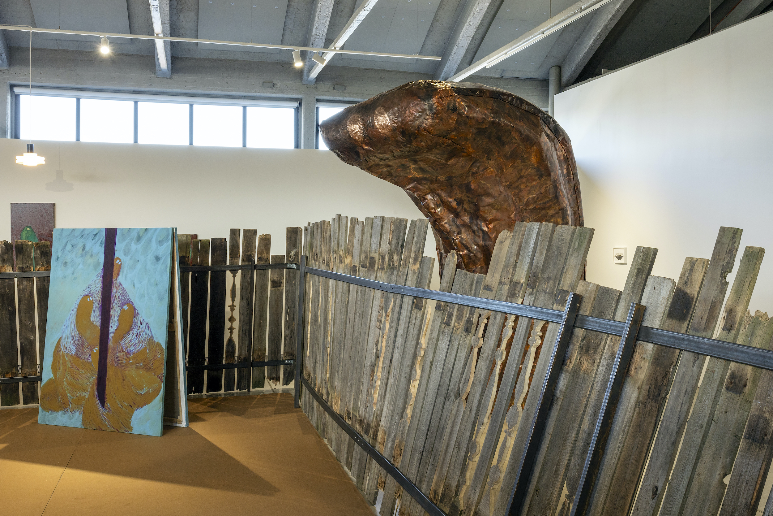 Flo Kasearu’s solo exhibition BANANA – Build Absolutely Nothing Anywhere Near Anyone explores the dynamics of public and private space through the lens of the NIMBY (Not In My Backyard) phenomenon. BANANA invites visitors to engage in discussions about urban and rural development, public participation, local values, and property rights. Offering visual, auditory, and tactile experiences, BANANA combines installations, paintings, video, photography, and sculpture to create narratives about the dynamics of inclusion and exclusion that define contemporary development and the complexities of land use.