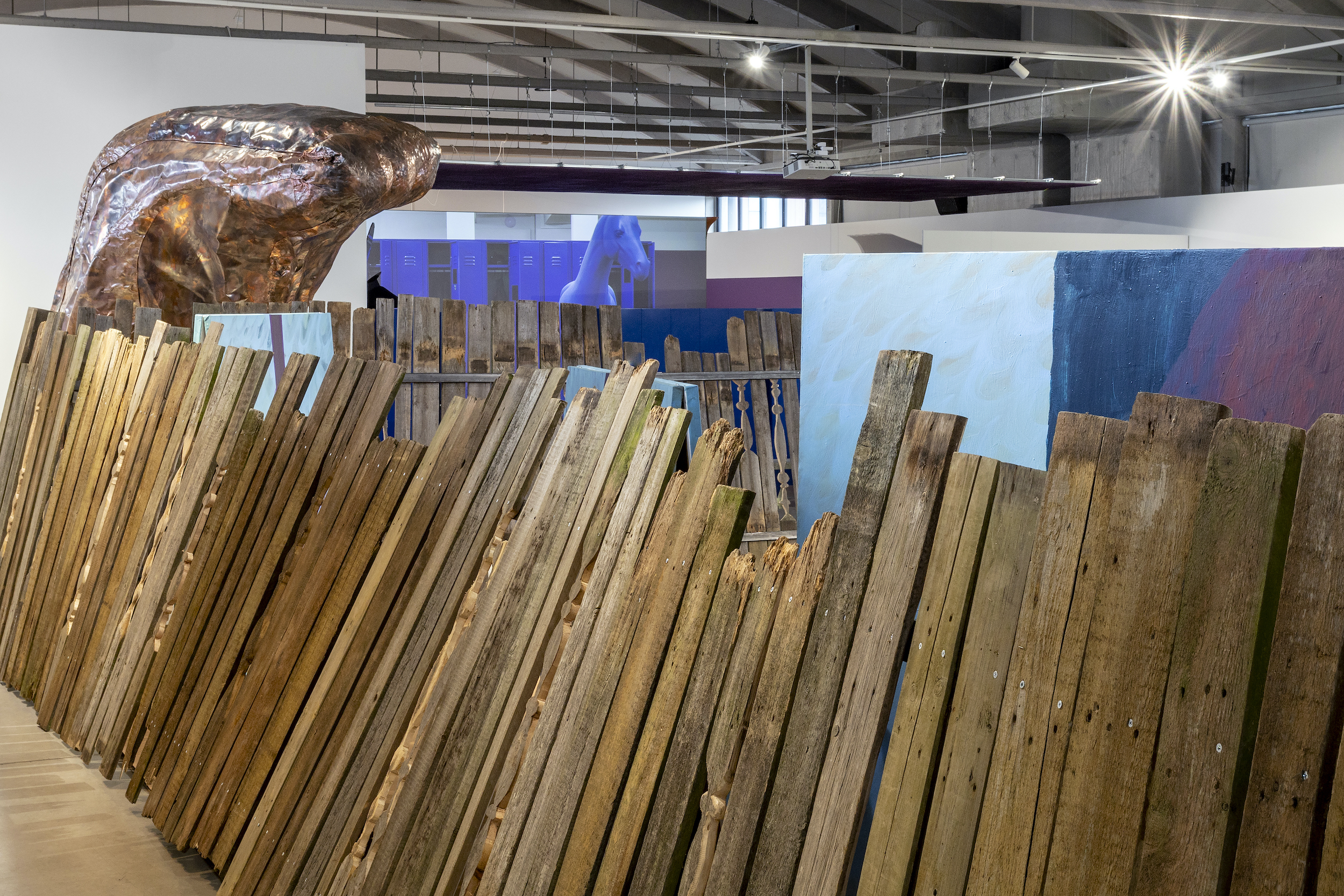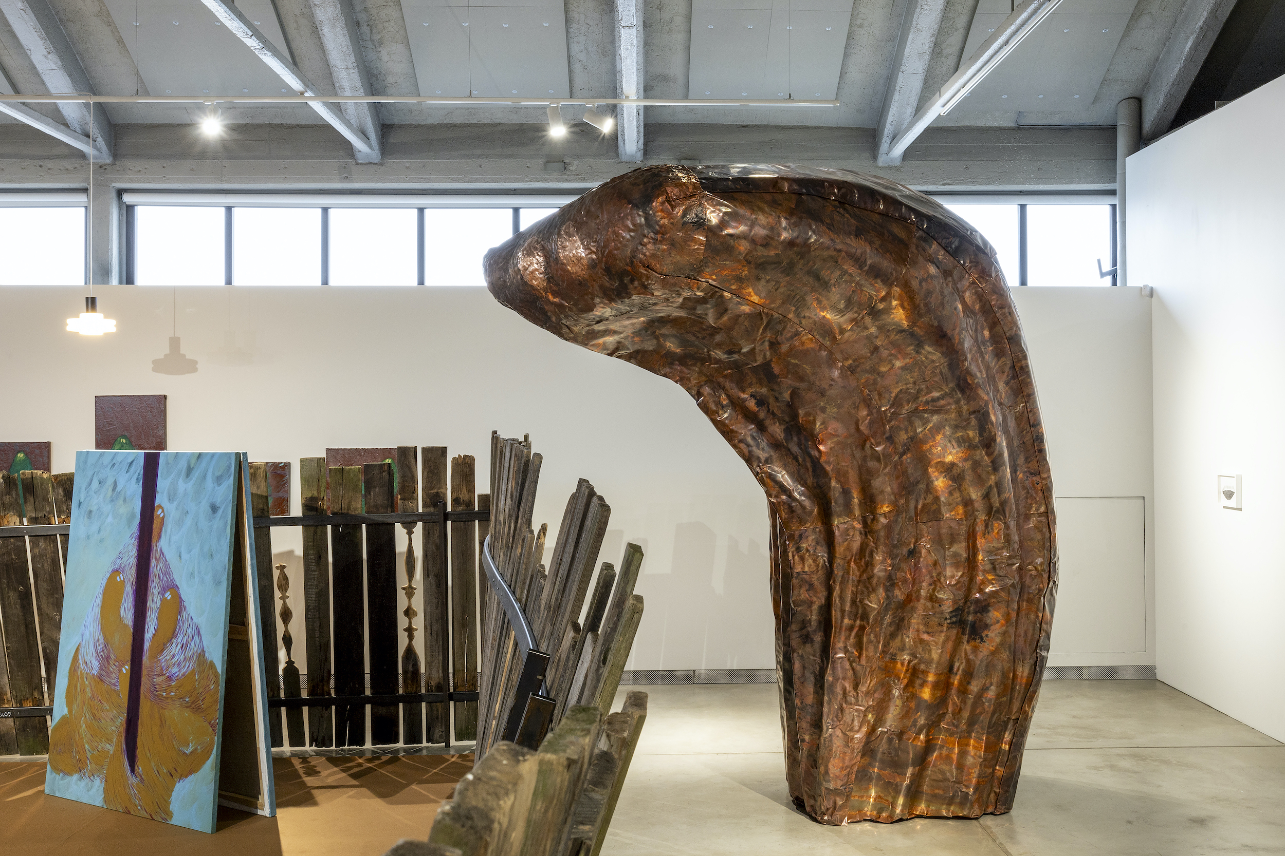 Over 50 newly-commissioned and recent works exploring these timely ideological and political disagreements were on display at Kai. Visitors will arrive at an imagined—though possibly real—community where notices are publicly posted, energy flows, surveillance intensifies, power lines are severed, views are obstructed, towering structures loom excessively, and neighbors contend with each other and their rapidly reshaped communities.